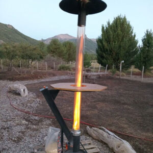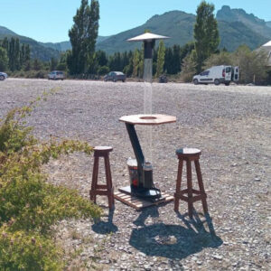 El modelo Patagonia combina calefacción y funcionalidad, incorporando una práctica mesa circular que lo convierte en el centro de reunión perfecto para exteriores, quinchos o terrazas. Su diseño rústico y robusto lo vuelve ideal para climas fríos y entornos naturales.